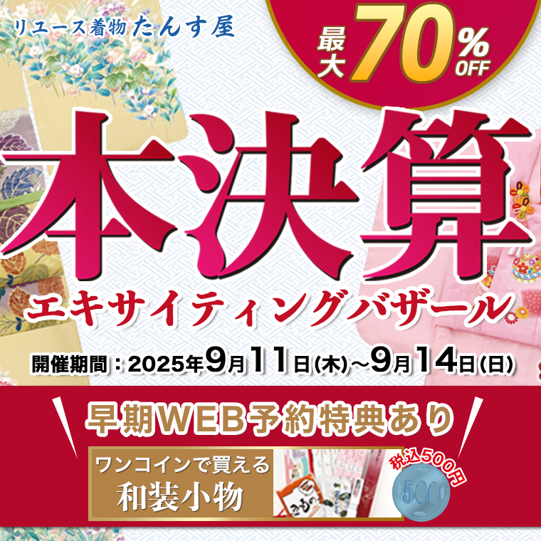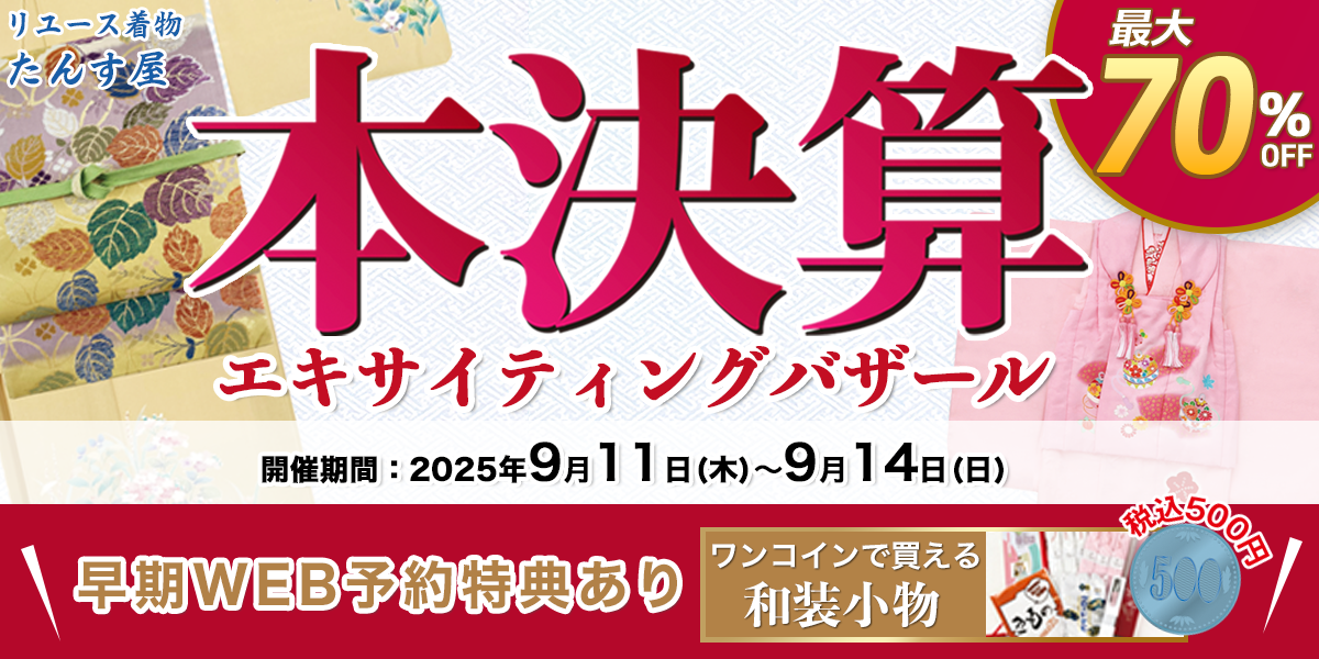 - 2024年1月10日(水)~15日(月)【新春きもの市】たんす屋NEXT大宮高島屋店