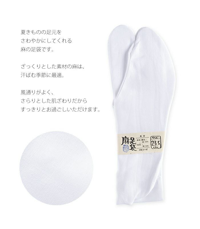 他の画像を見る (新品)【夏用】麻足袋(白)(4枚コハゼ)(22.0~24.5cm) 都粋 ¥ 5,280 税込 夏用 夏 麻 足袋 たび タビ 白 ホワイト 涼しい 4枚 コハゼ こはぜ 鞐 小鉤 22.0cm 22.5cm 23.0cm 23.5cm 24.0cm 24.5cm おしゃれ オシャレ お洒落 お気に入りに登録する