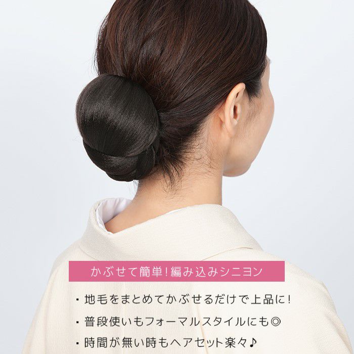 編み込みのアレンジがされたシニヨンタイプのウィッグです。