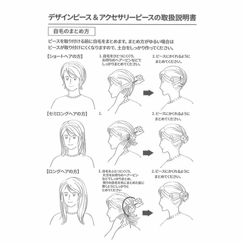 キャップの内側に付属しているコームや、足りない部分はお持ちのピンなどを使い固定して下さい。