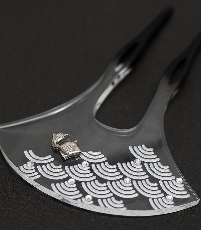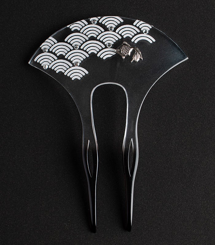 青海波にラインストーンと金魚がアクセントになっています。