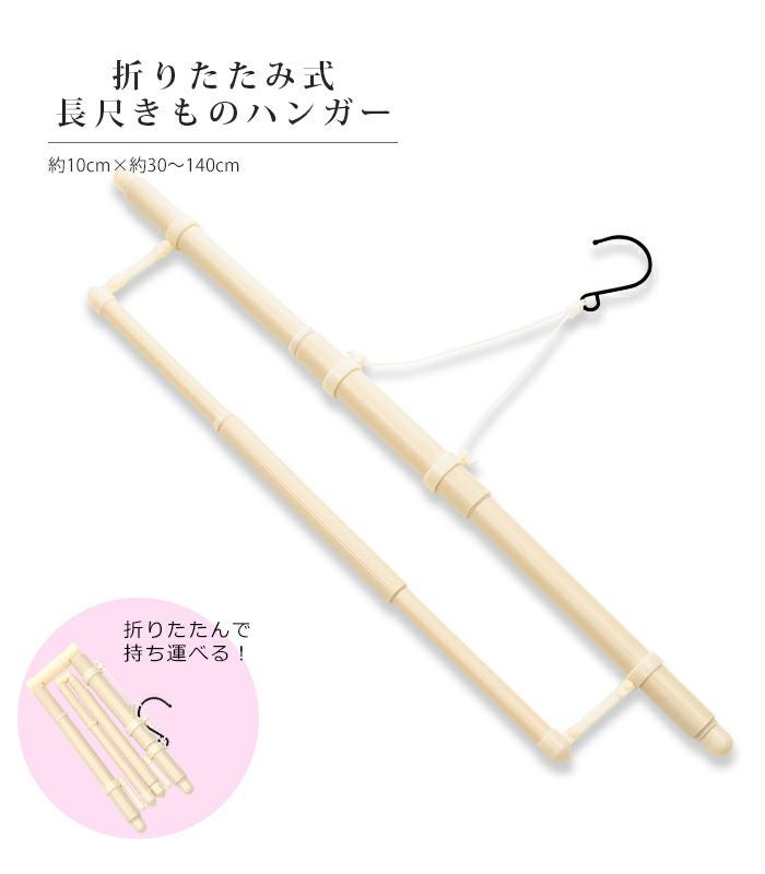 お着物に合わせて長さ調整が自在の折りたたみ式きものハンガー。