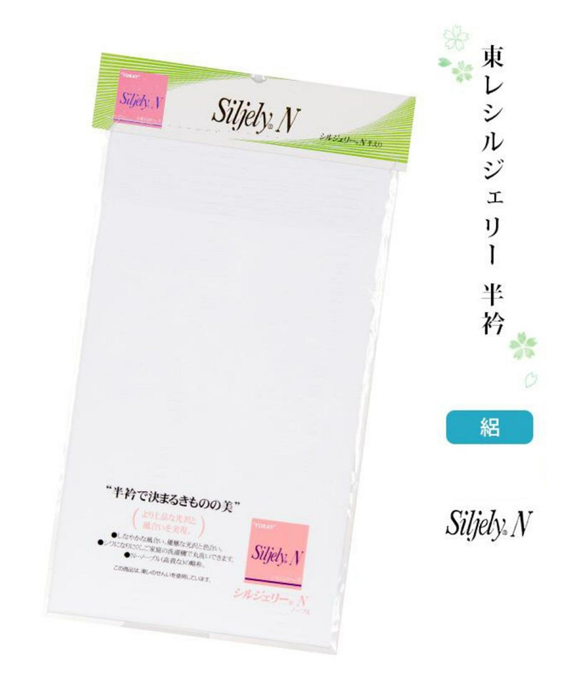 優雅な光沢で、絹のようにしなやかなサラリとした風合いを持ち、丈夫で色褪せ・黄変がなく保存が簡単な東レシルジェリー生地を使用した白半衿です。