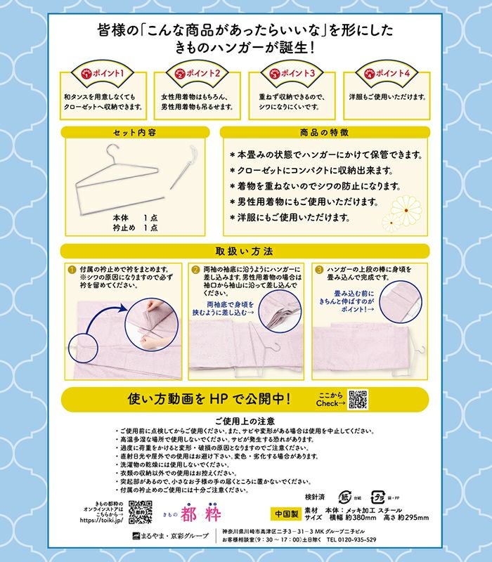 (新品)きものハンガー かけえもん(箱あり 10本セット) 都粋