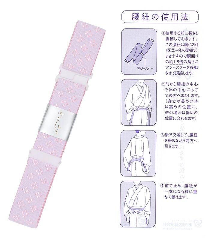 結び目のごろつき、ゆるみなどの心配がないゴムベルトタイプの腰ひもです。