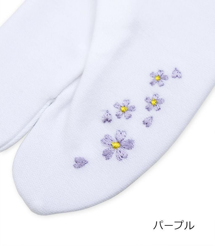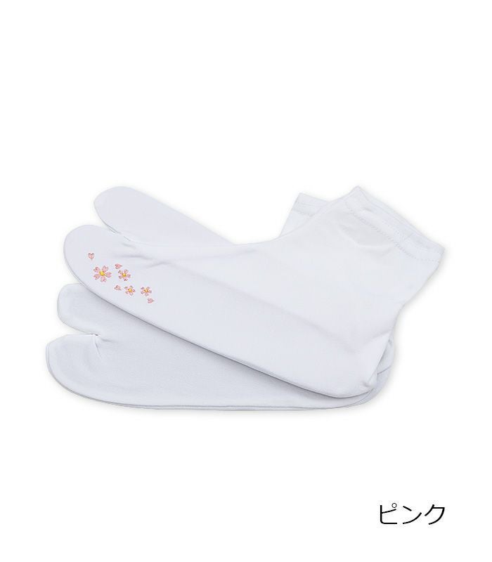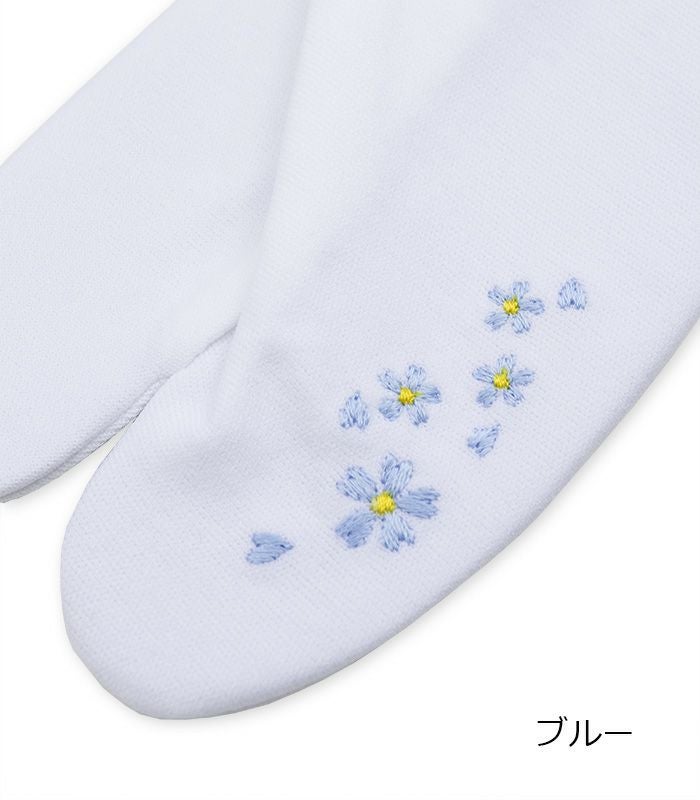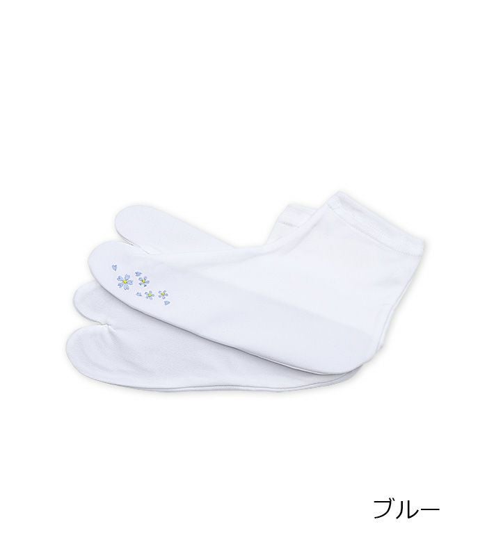 小花刺繍がさりげなく可愛らしい刺繍足袋です。