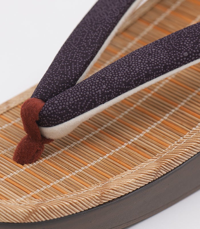 粋な柄の鼻緒は、和の趣を楽しみながらスタイリッシュな印象をプラスしています。