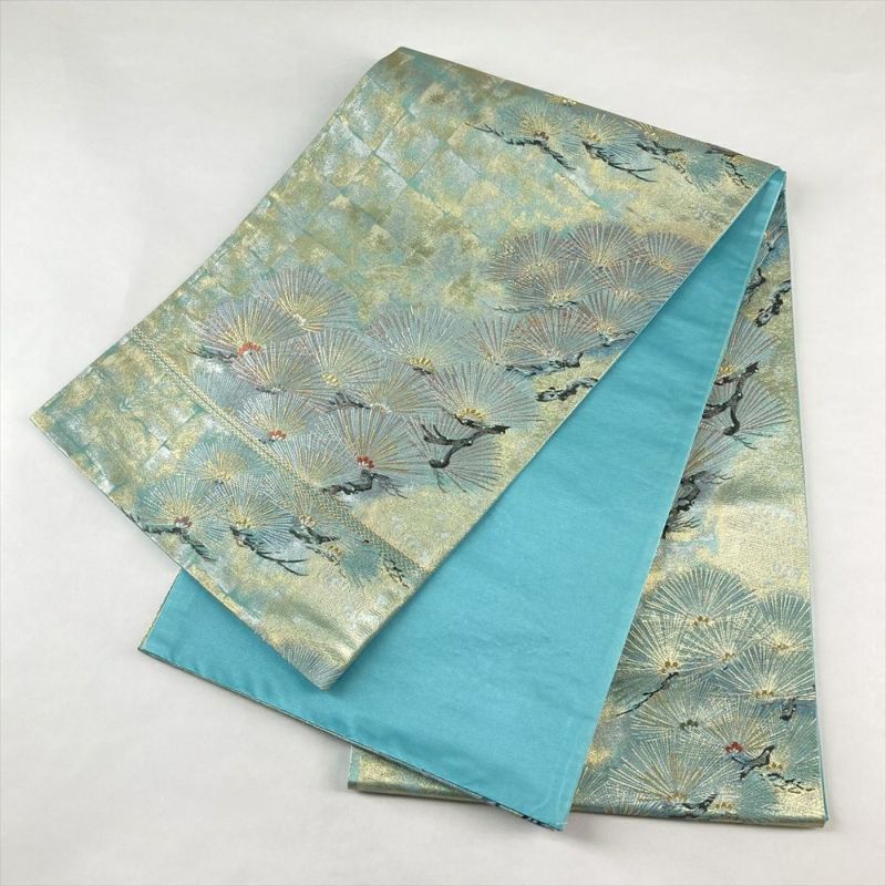 (中古)袋帯 水色 金 フォーマル 六通 金糸 銀糸 松 絹