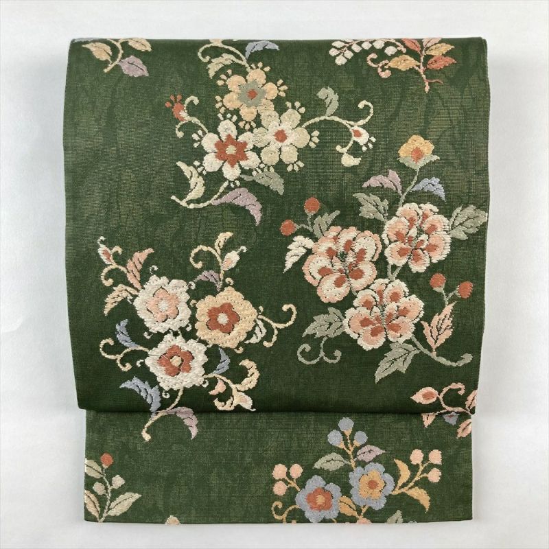 天平の花文様が織りなす、千歳緑(ちとせみどり)の深い色合いが特徴。