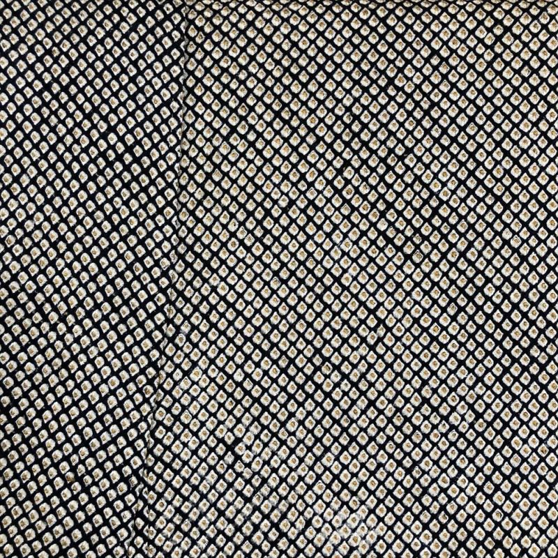 (中古) 小紋 黒 カジュアル 総絞り 袷 絹 【身丈】157cm【裄丈】65cm