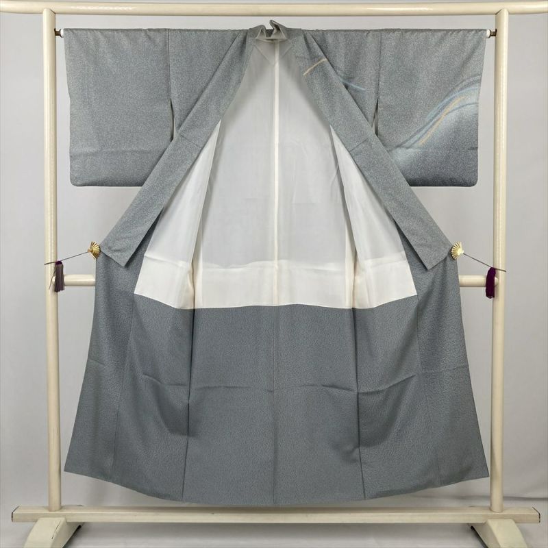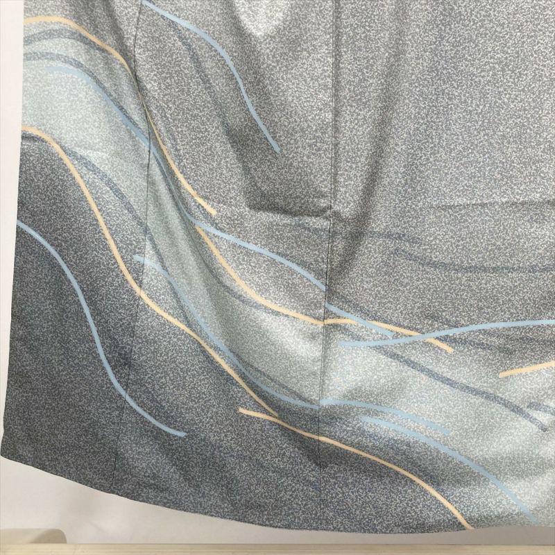 (中古) 訪問着 ブルーグレー カジュアル たたき 抽象柄 袷 絹 大島紬【身丈】142.5cm【裄丈】65cm