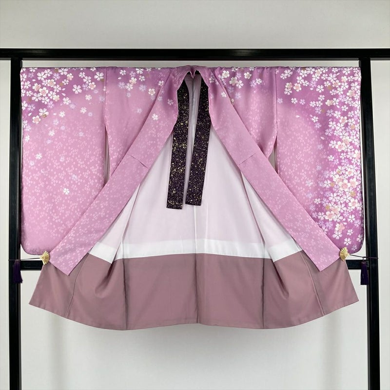 (中古)二尺袖 単品 ピンク 紫 フォーマル 桜 袷 ポリエステル M L 2L
