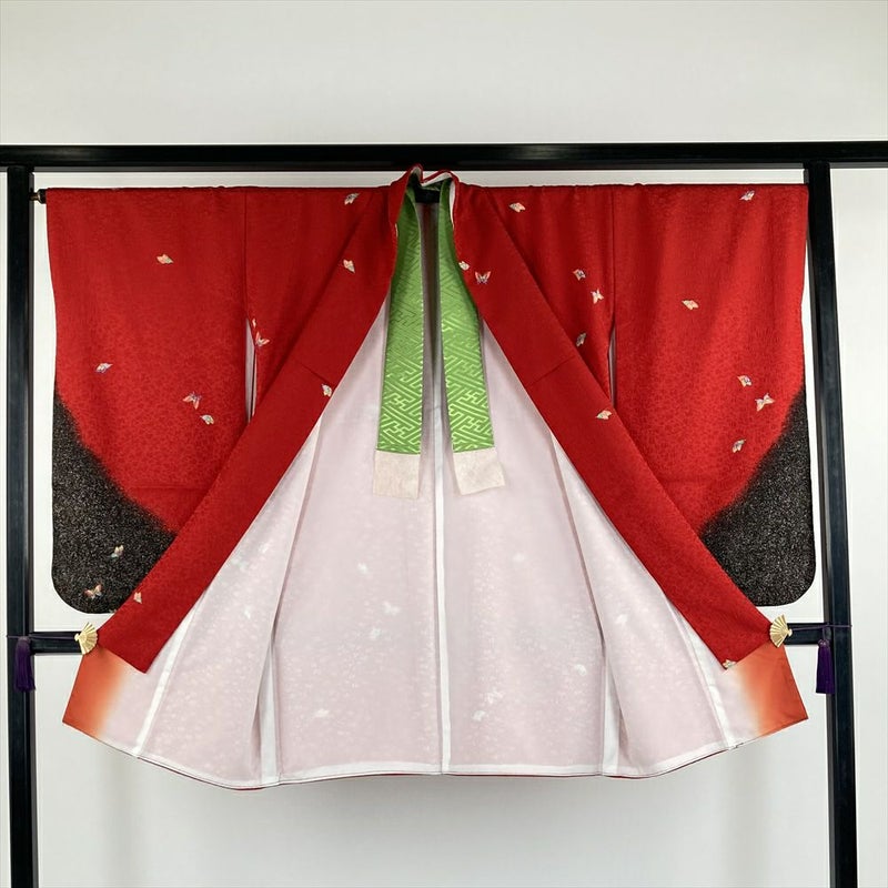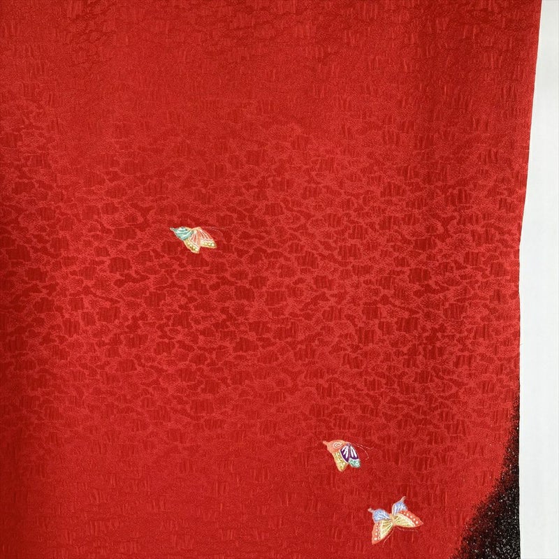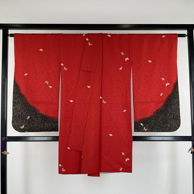 (中古)二尺袖 単品 赤色 フォーマル 蝶 袷 ポリエステル M L 2L