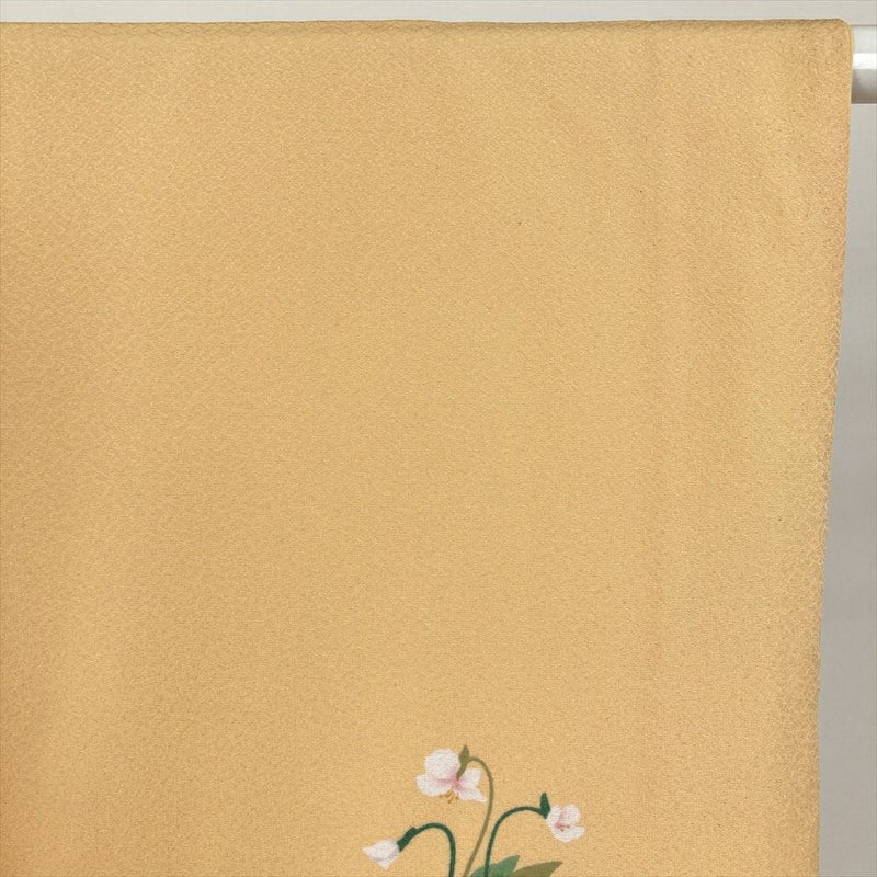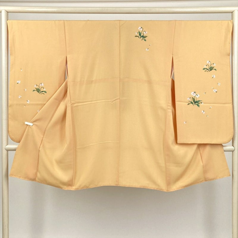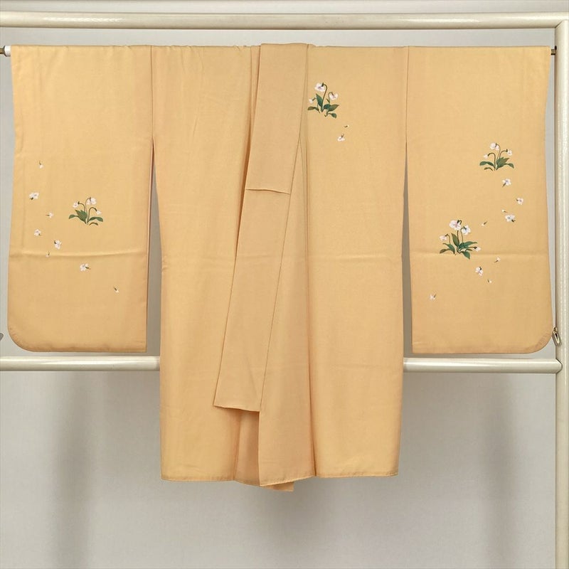 (中古)二尺袖 単品 薄オレンジ色 フォーマル 小花 袷 ポリエステル M L 2L