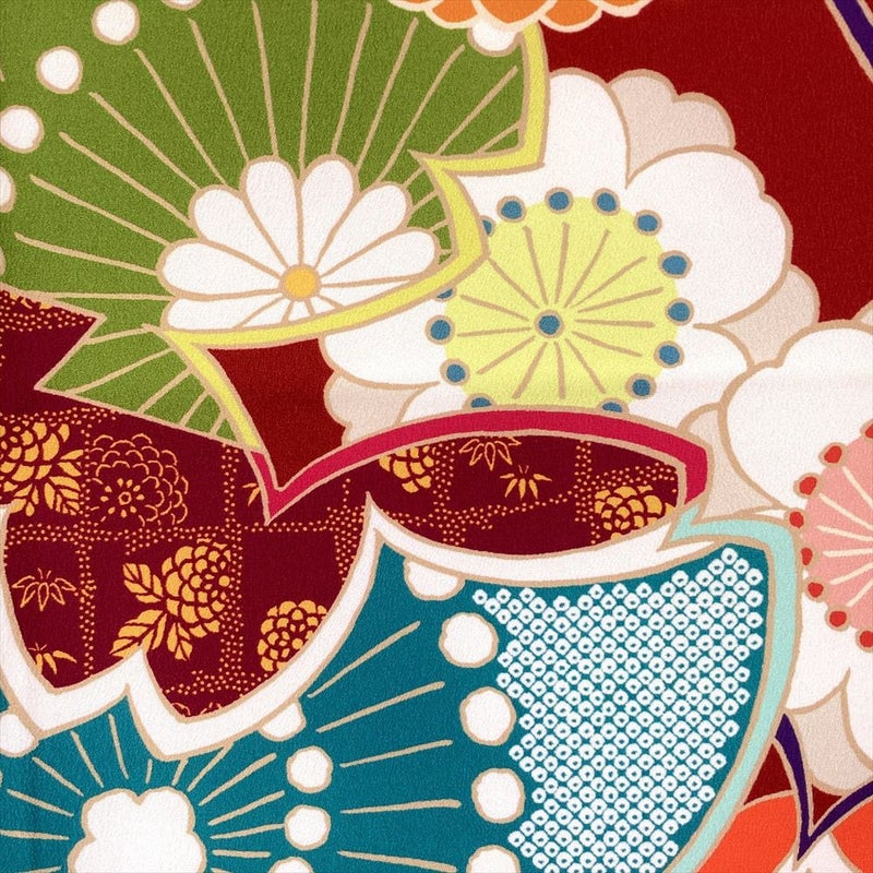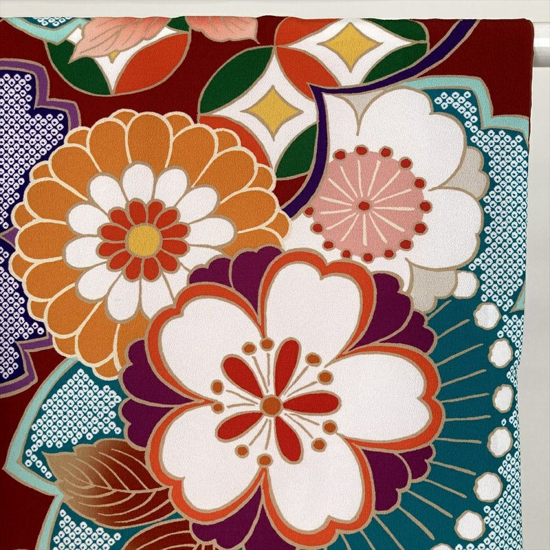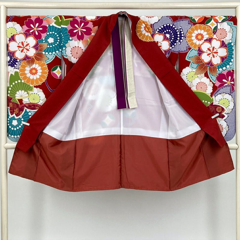 (中古)二尺袖 単品 赤色 フォーマル 桜 菊 七宝 袷 ポリエステル M L 2L