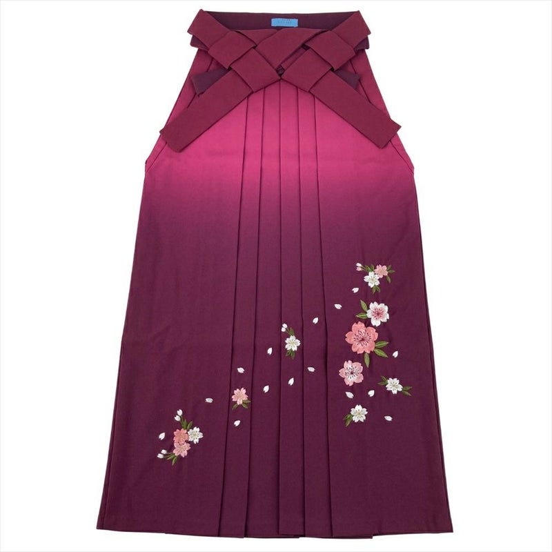 (中古)袴 単品 ワイン ピンク ぼかし 刺繍 フォーマル ポリエステル