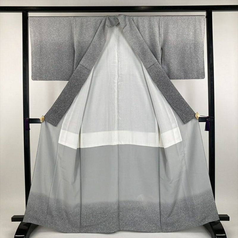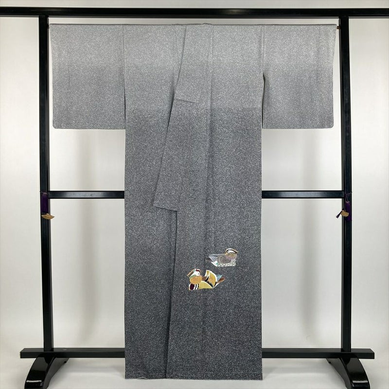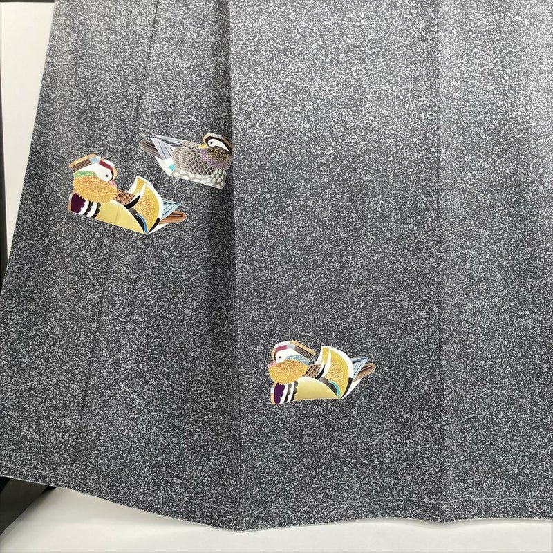 【色柄】グレー フォーマル ちりめん 染め 金銀彩 鴛鴦
