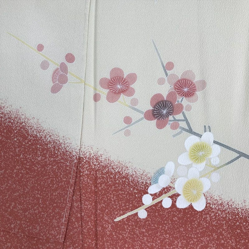 【色柄】クリーム色 ピンク 卵色 珊瑚色 フォーマル ちりめん 染め 梅