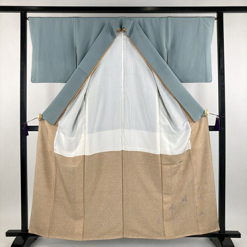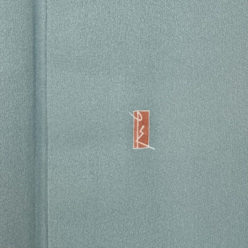 (中古) 初代由水十久 訪問着 水色 浅葱色 フォーマル ちりめん 染め 唐子 傘 袷 【身丈】157cm【裄丈】66cm