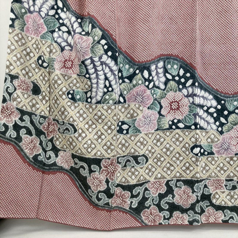 【色柄】ピンク 紅梅色 フォーマル 総絞り 花 霞に花菱
