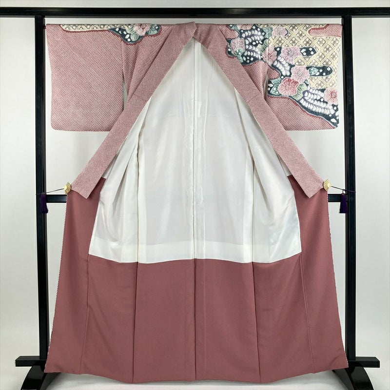 (中古)きぬたや 訪問着 ピンク 紅梅色 フォーマル 総絞り 花 霞に花菱 袷 【身丈】160cm【裄丈】67.5cm