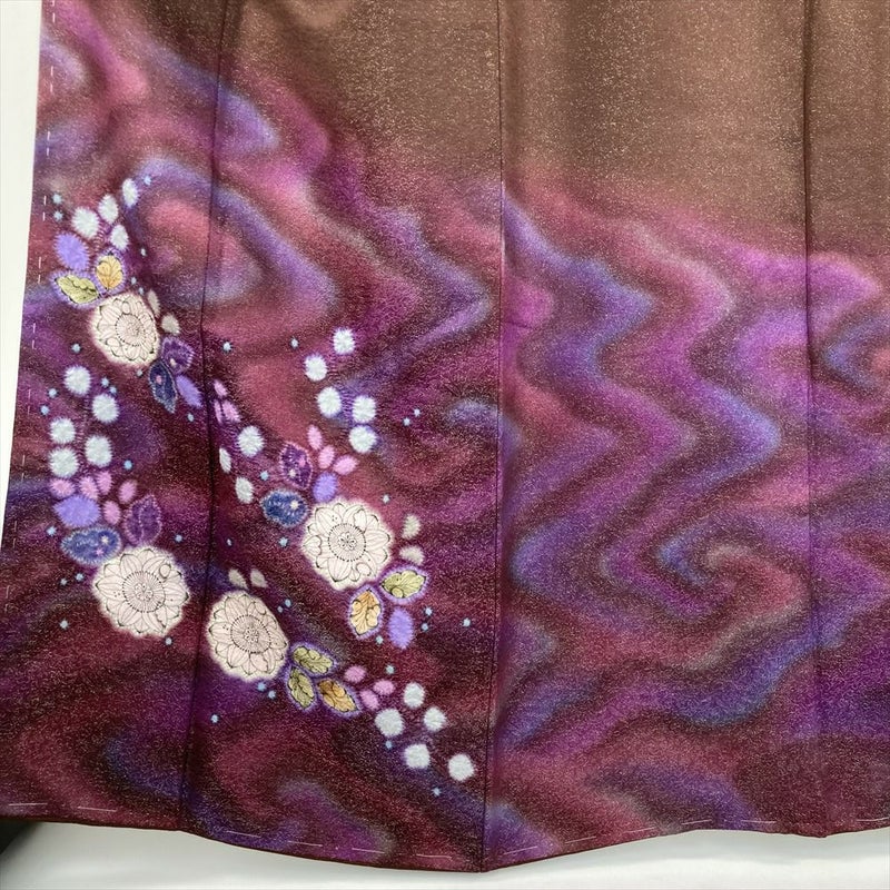 【色柄】茶 臙脂色 紫色 フォーマル 金通し 染め 辻が花