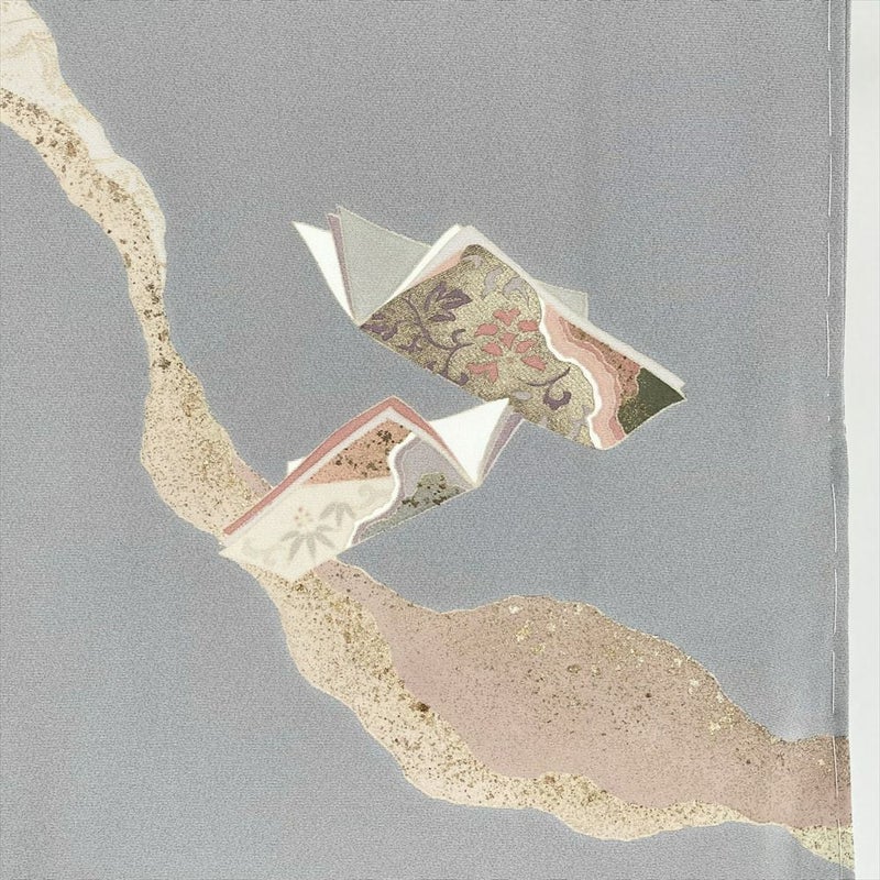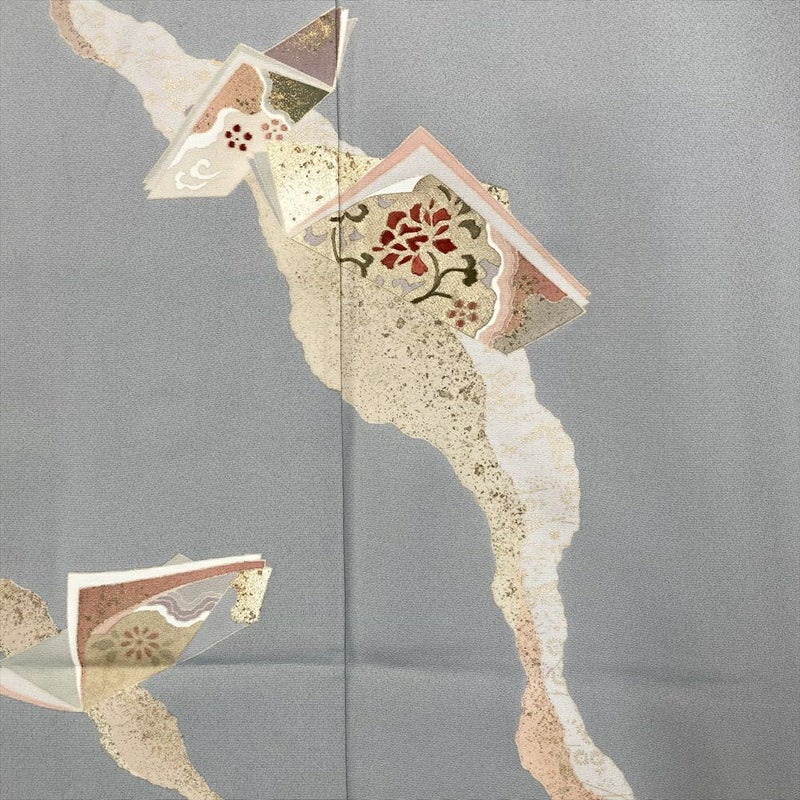 【色柄】グレー 灰色 セミフォーマル ちりめん 金彩 刺繍 冊子文