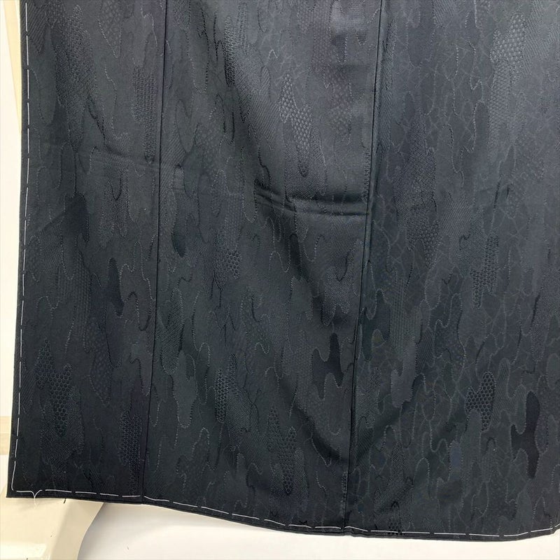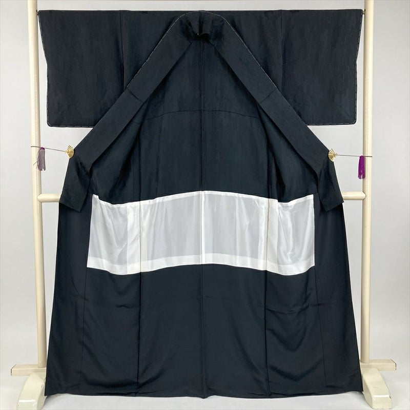 (中古) 色無地 黒色 セミフォーマル 地紋織り 袷 絹【身丈】161cm【裄丈】67.5cm
