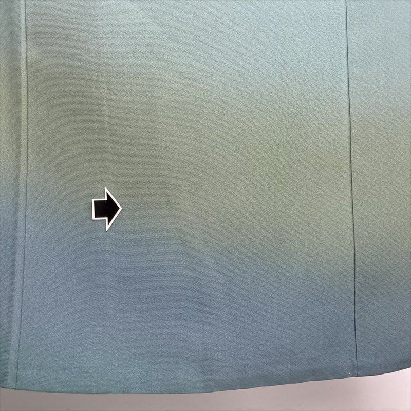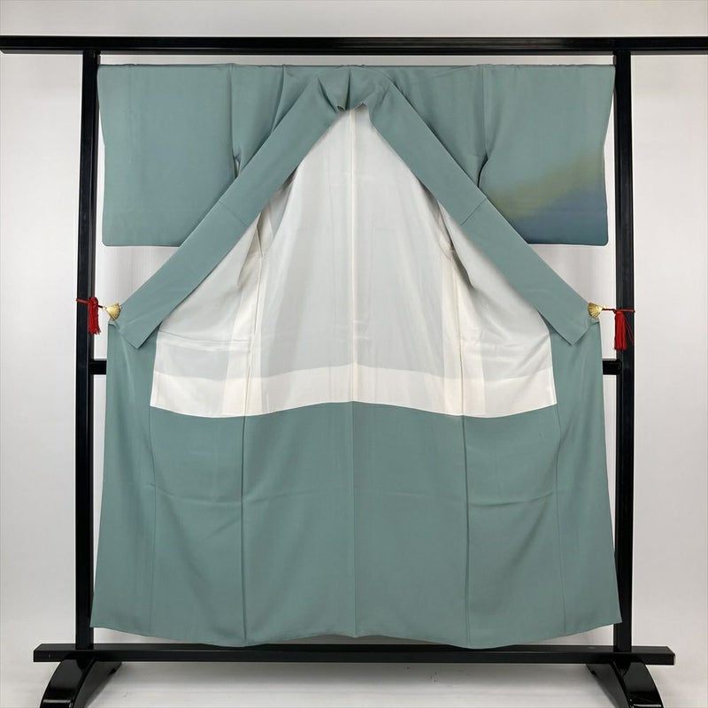(中古)訪問着 青磁色 フォーマル セミフォーマル ちりめん ぼかし染め 金彩 銀彩 刺繍 色紙 袷 SS【身丈】152.5cm【裄丈】70.5cm