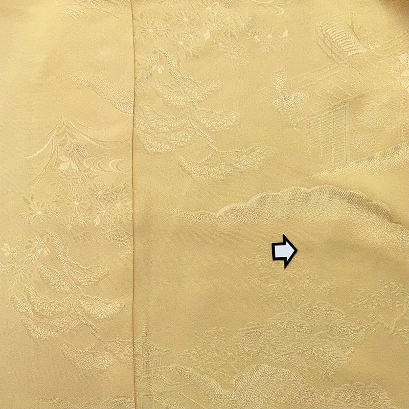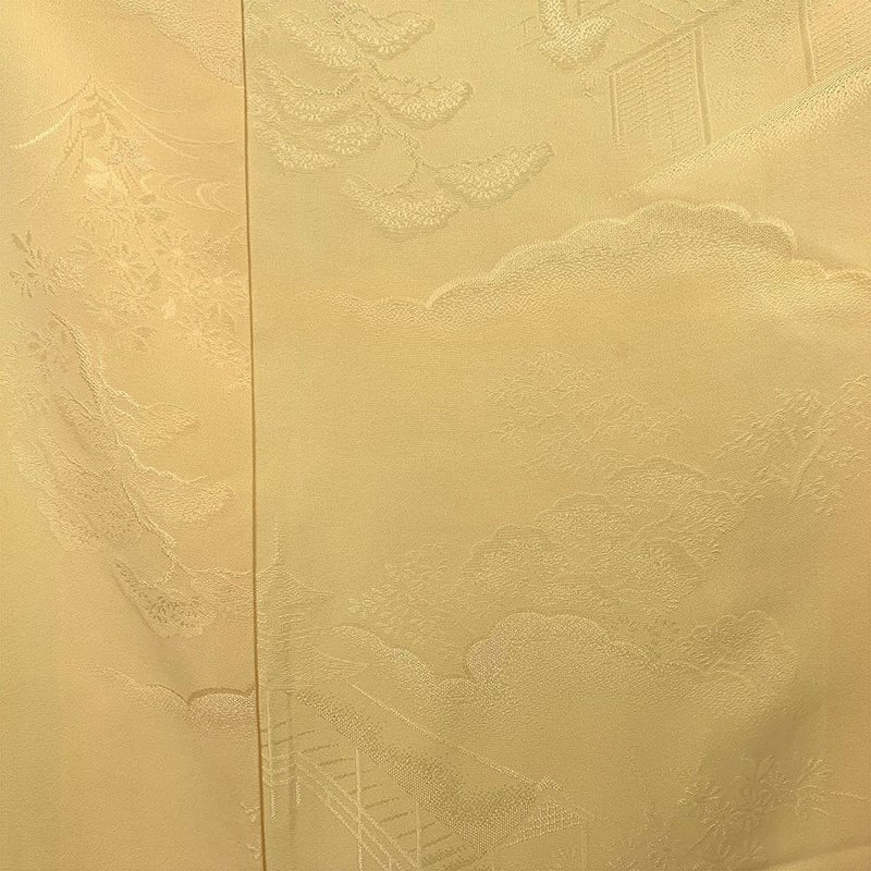 (中古)色無地 黄色 セミフォーマル 地紋織り 袷【身丈】151.5cm【裄丈】65.5cm