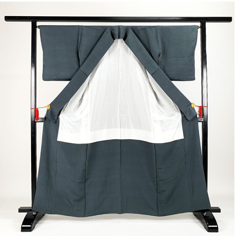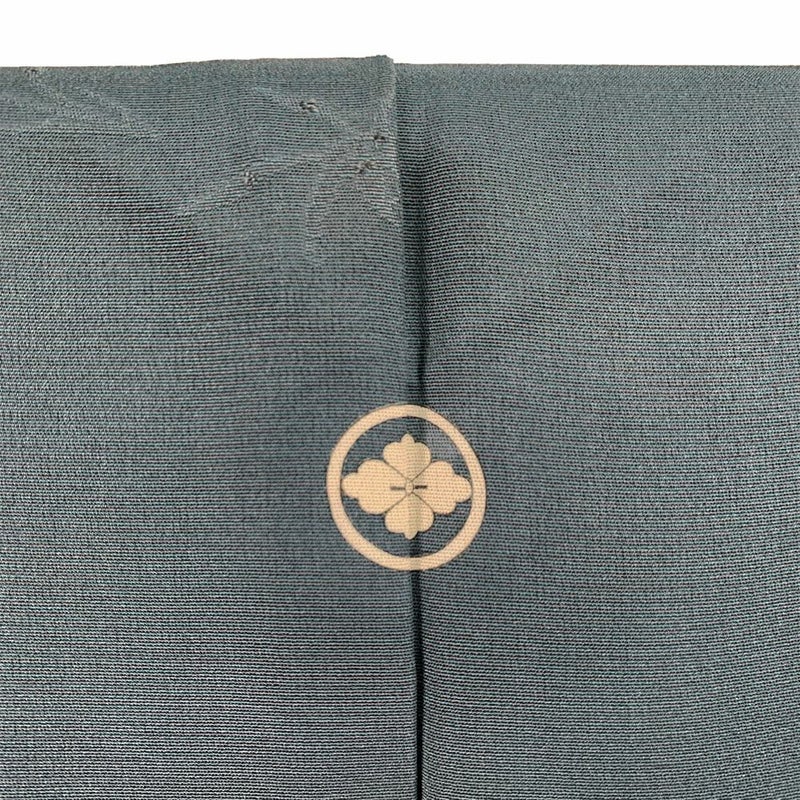 (中古)色無地 セミフォーマル 緑 一つ紋 袷 地紋織り S【身丈】157.5cm【裄丈】66.5cm