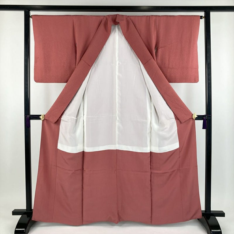 (中古) 色無地 ピンク 紅梅色 セミフォーマル カジュアル 地紋織り 染め 袷【身丈】158cm【裄丈】66cm