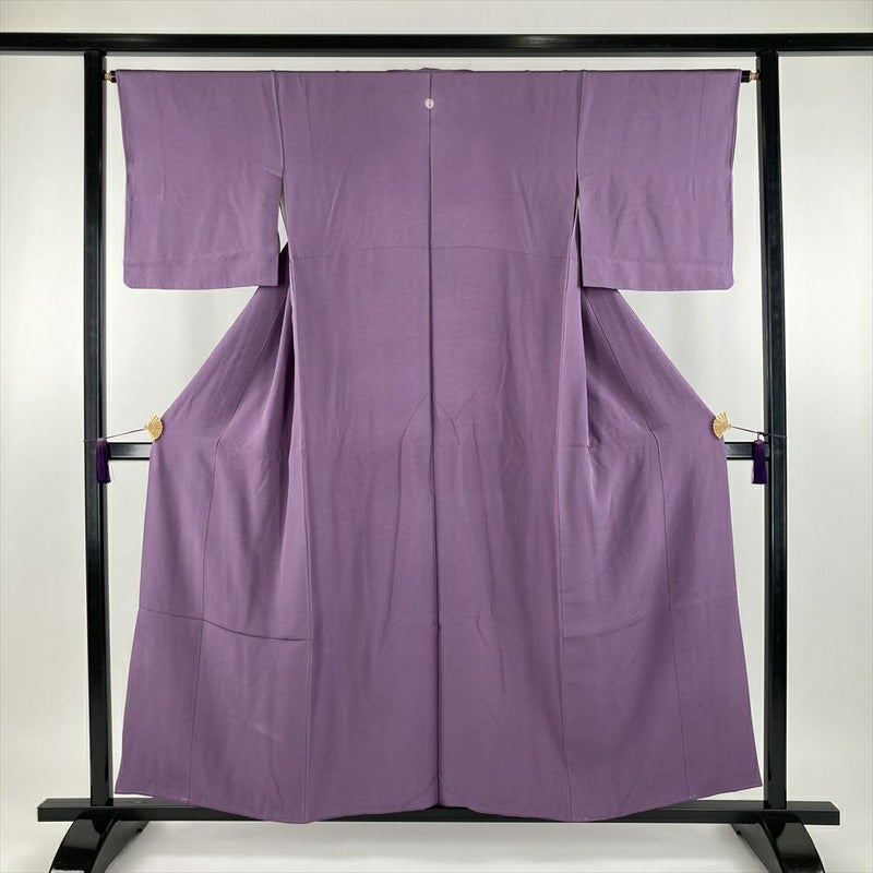 (中古) 色無地 藤色 紫 セミフォーマル カジュアル ちりめん 無地 袷 SS【身丈】151cm【裄丈】65.5cm