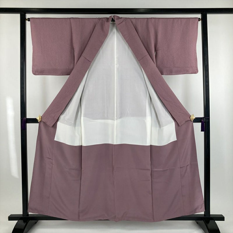(中古) 色無地 紫 セミフォーマル カジュアル 地紋織り 袷【身丈】150cm【裄丈】65cm