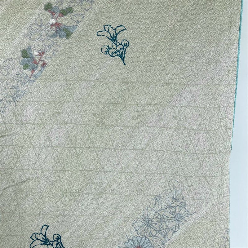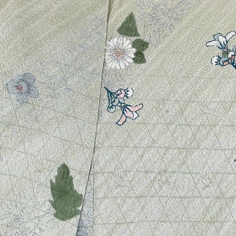【色柄】薄緑 セミフォーマル 地紋織り 染め 斜め取り 四季の草花