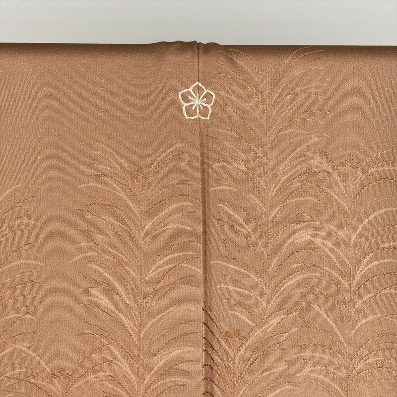 【色柄】茶 セミフォーマル 地紋織り 染め 一つ紋 刺繍 金彩 若杉