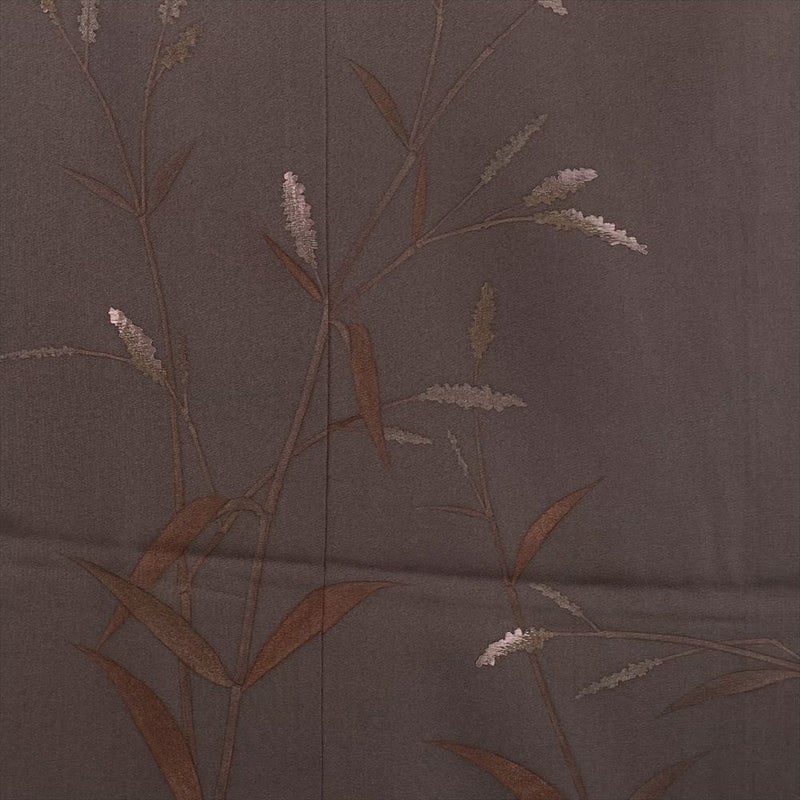 (中古)訪問着 焦げ茶 セミフォーマル 染め 刺繍 稗 袷 M【身丈】161cm【裄丈】66cm