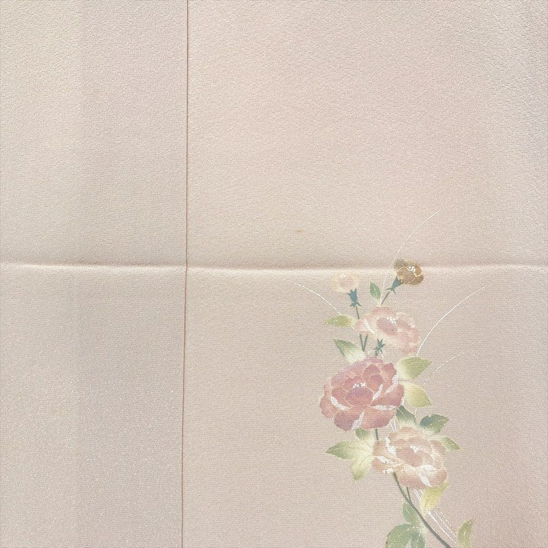 (中古)訪問着 薄ピンク セミフォーマル 染め 金彩 菊 牡丹 袷 SS【身丈】151cm【裄丈】65cm