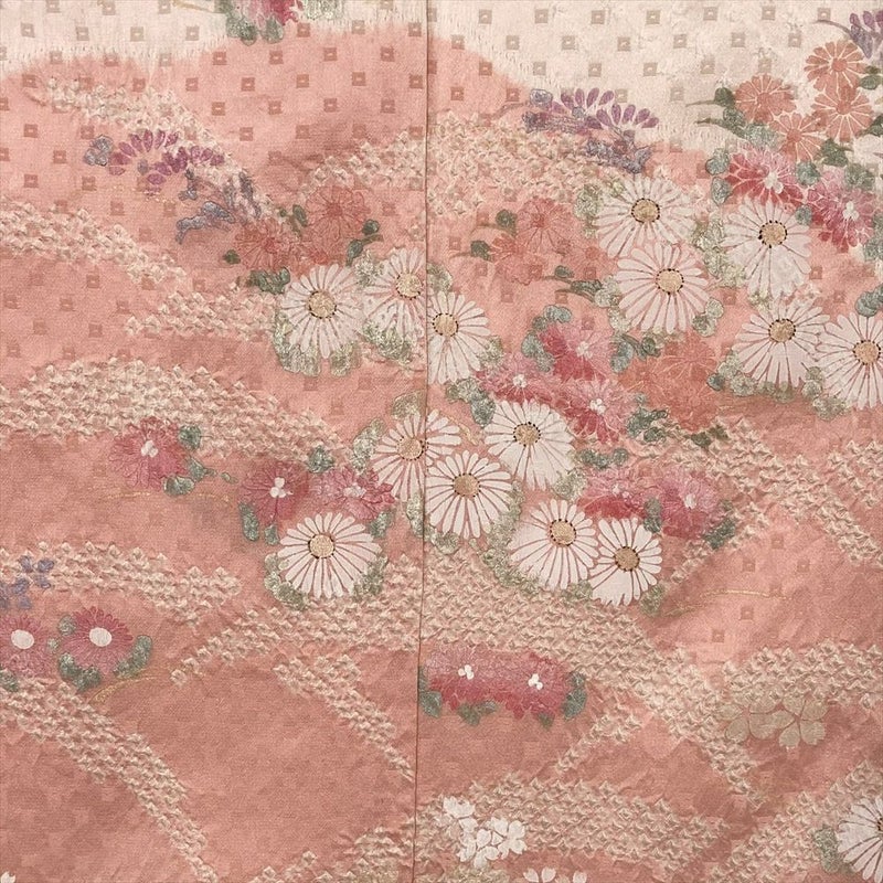 【色柄】ベビーピンク色 セミフォーマル カジュアル 染め 絞り 銀彩 菊尽くし