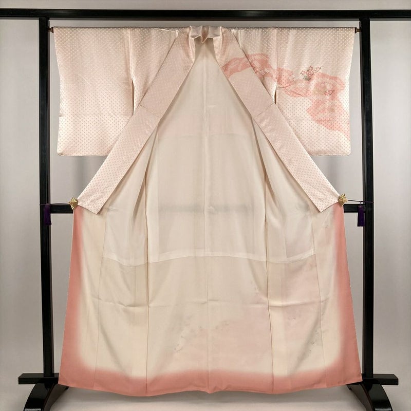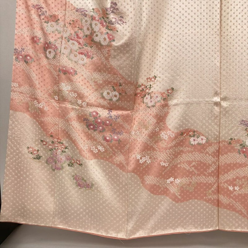 (中古) 訪問着 ベビーピンク色 セミフォーマル カジュアル 染め 絞り 銀彩 菊尽くし 袷【身丈】155.5cm【裄丈】65.5cm