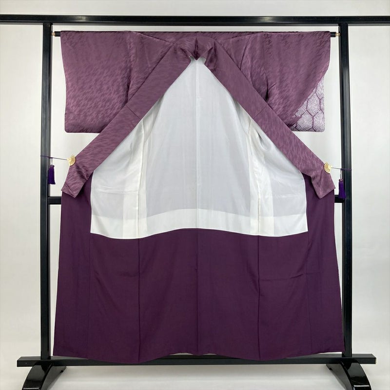 (中古)訪問着 紫 セミフォーマル 地紋織り 染め 絞り 亀甲 袷 SS【身丈】152.5cm【裄丈】64cm