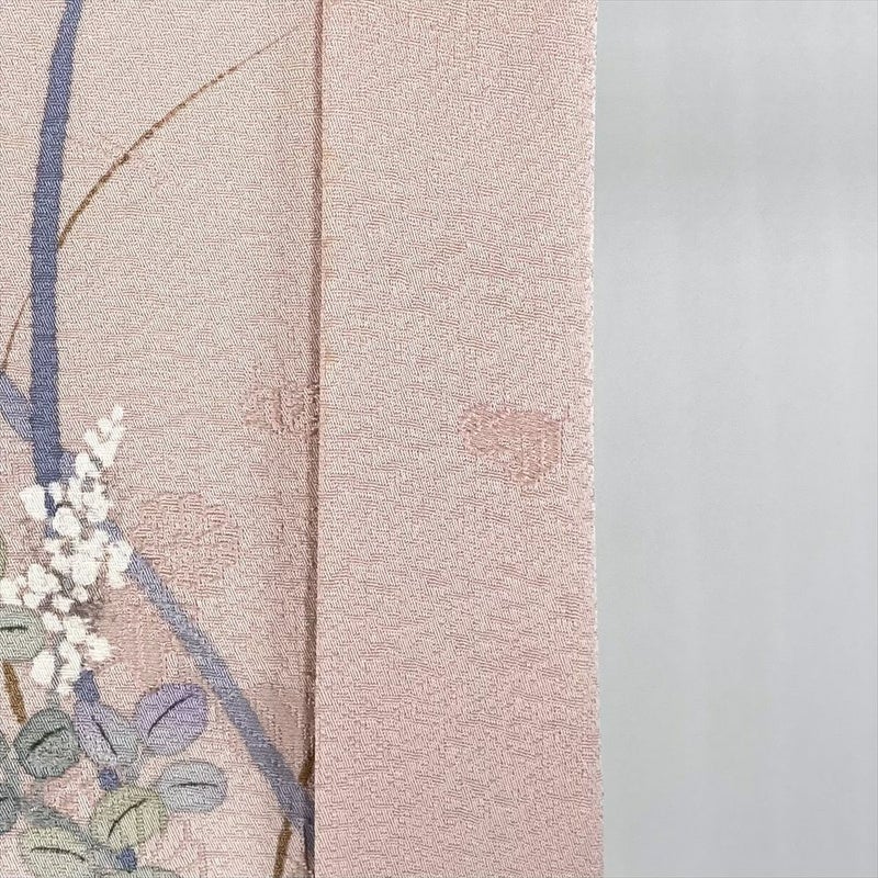 【色柄】ベビーピンク色 セミフォーマル 地紋織り 染め 金彩 萩 桔梗