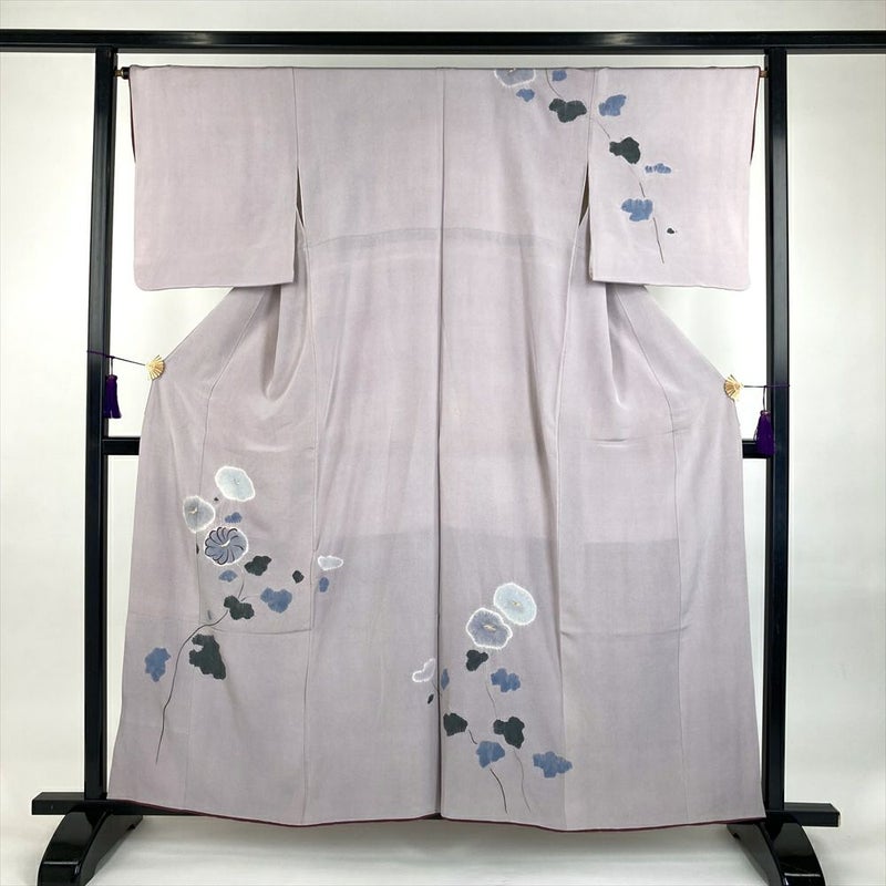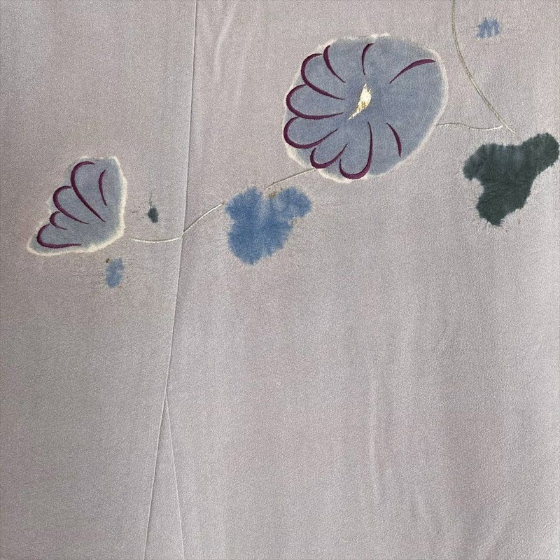 (中古)訪問着 藤色 紫 セミフォーマル ちりめん 染め 刺繍 菊 袷 SS【身丈】152.5cm【裄丈】66cm