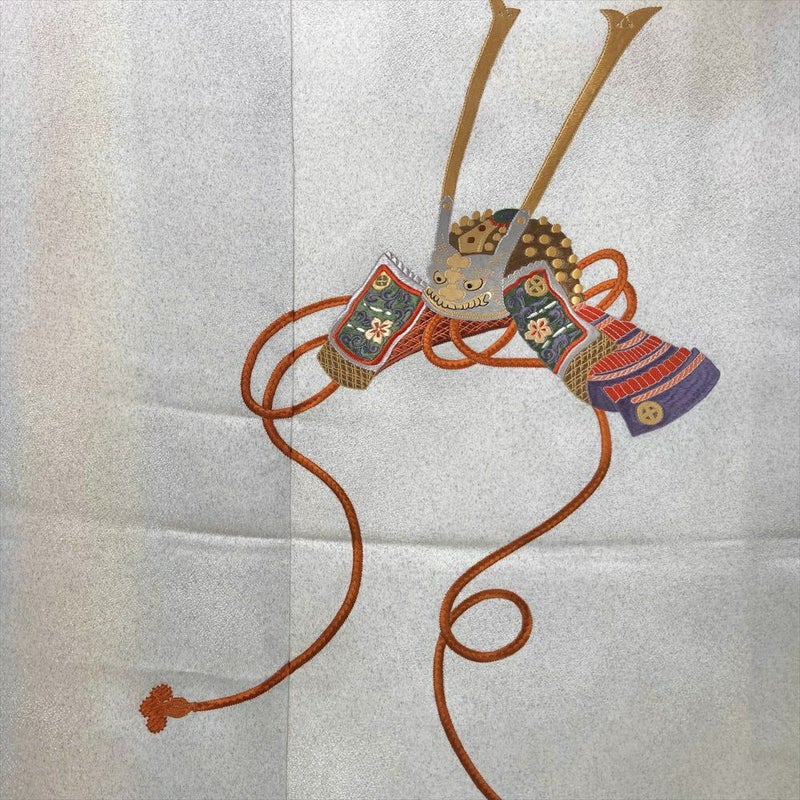 【色柄】薄灰 グレー ベージュ セミフォーマル 地紋織り 染め 一つ紋 刺繍 兜