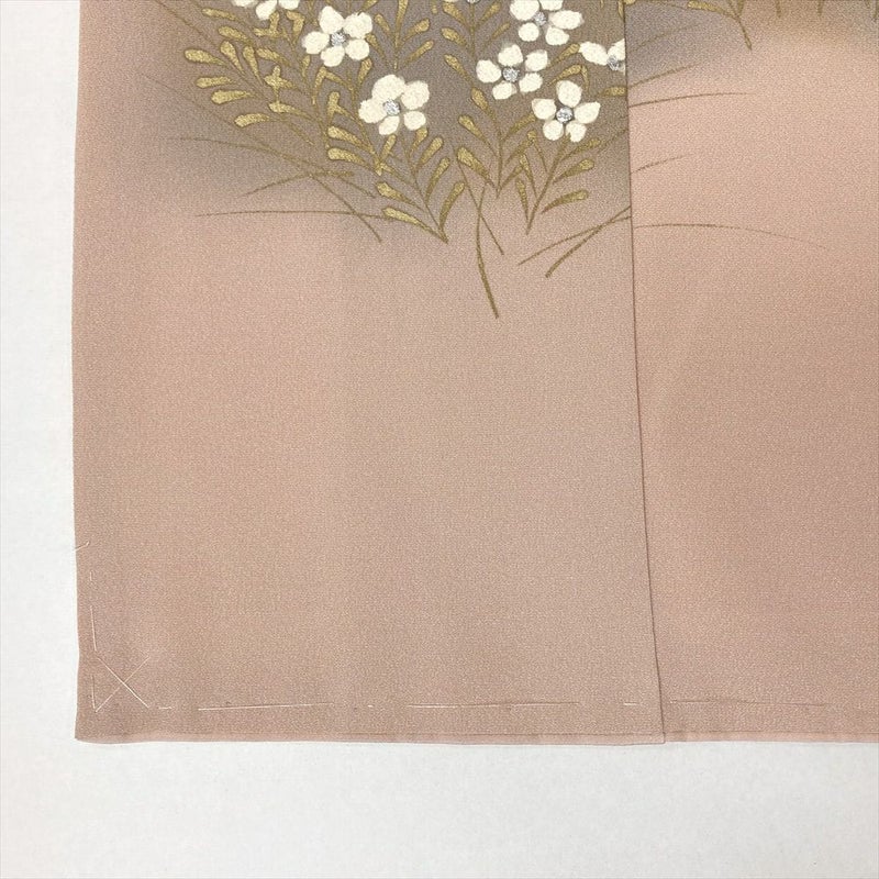 背、脇、衽、襟など縫合せの部分にも模様が続きます、染めや刺繍など様々な技法により細部まで緻密に計算され華やかで美しく仕上がっています。着物には様々な柄が存在します。見た目の好みで決めるのももちろん良いですが、それぞれの柄に込められた意味を知って柄を選ぶのも一つの楽しみです。保存臭がややございます。しつけあり