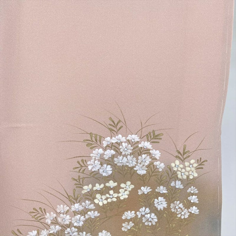【色柄】薄ピンク セミフォーマル ちりめん 染め 金彩 わらべ 四季の草花