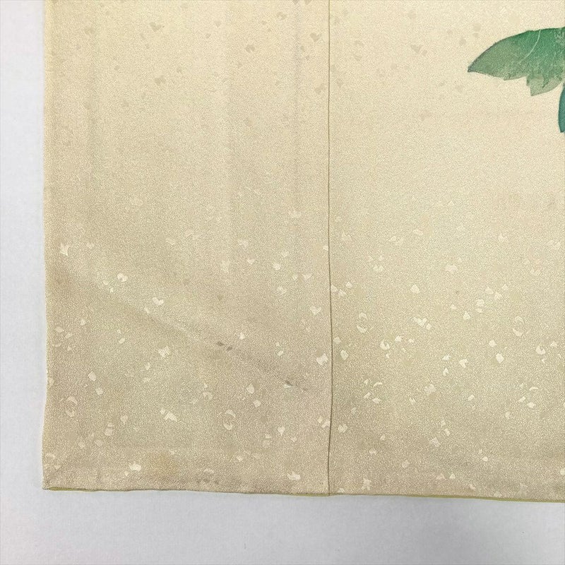 背、脇、衽、襟など縫合せの部分にも模様が続きます、染めや刺繍など様々な技法により細部まで緻密に計算され華やかで美しく仕上がっています。着物には様々な柄が存在します。見た目の好みで決めるのももちろん良いですが、それぞれの柄に込められた意味を知って柄を選ぶのも一つの楽しみです。右後身に汚れがございます。保存臭がややございます。