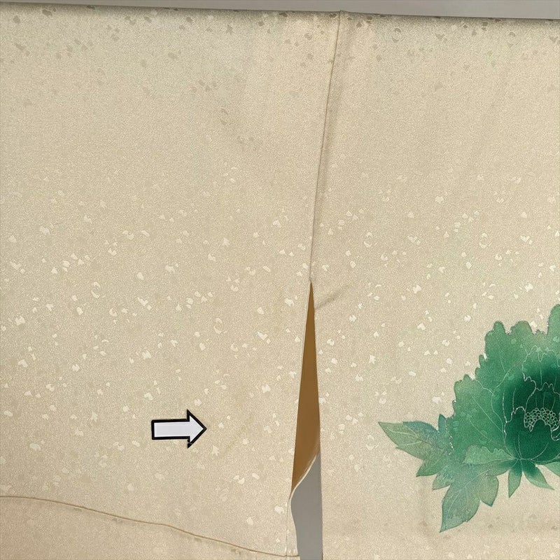【色柄】薄黄 クリーム セミフォーマル 地紋織り 染め 銀駒刺繍 銀彩 牡丹