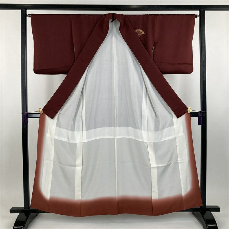 (中古) 訪問着 赤 臙脂色 セミフォーマル 染め 刺繍 光琳垣 袷【身丈】155cm【裄丈】65.5cm