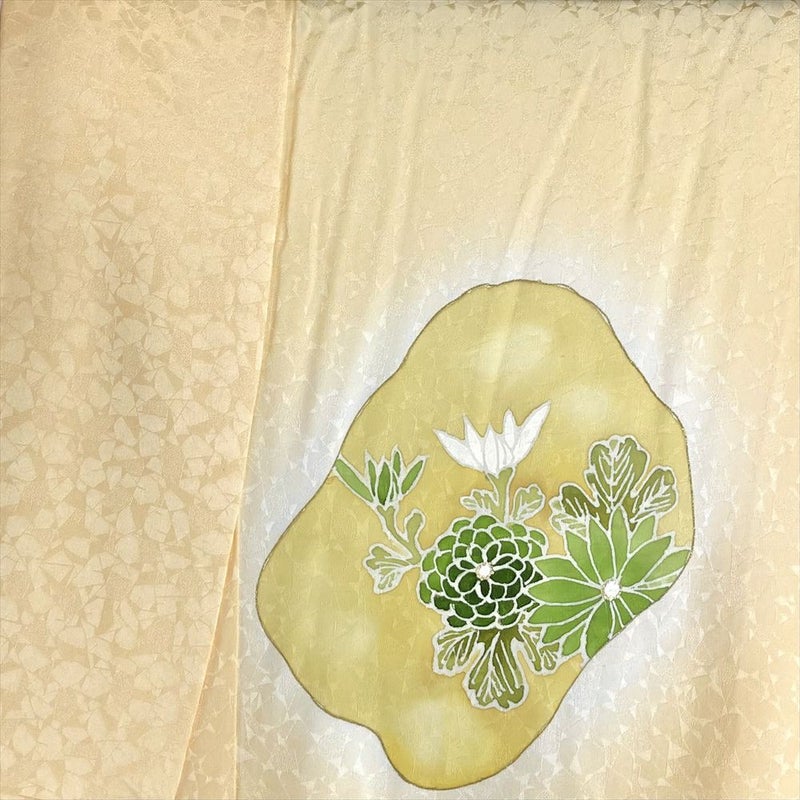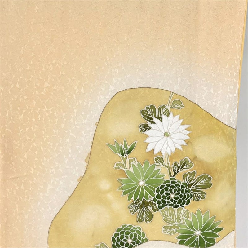 【色柄】薄黄 セミフォーマル 地紋織り 染め 金彩 菊